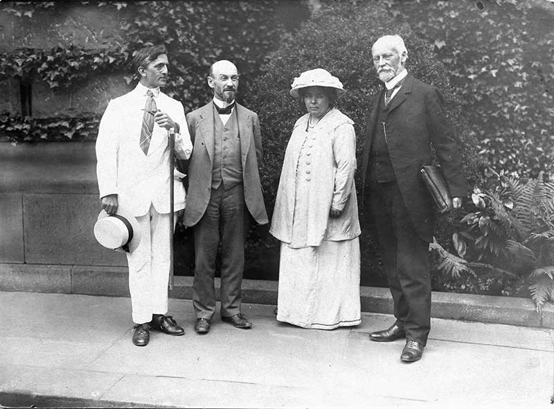 Ludwig Quidde (1858-1941) erhielt 1927 den Friedensnobelpreis als Vorsitzender der Deutschen Friedensgesellschaft. Das Foto zeigt ihn (rechts) mit weiteren Personen auf dem 8. Deutscher Pazifistenkongreß 13. Juni 1919 in Berlin. (Bayerische Staatsbibliothek, Bildarchiv hoff-5536)