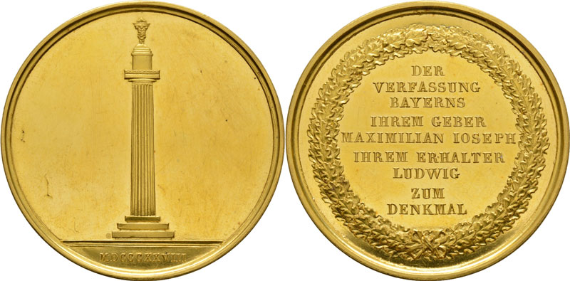 Medaille zur Errichtung der Verfassungssäule von 1828, München 1828, Staatliche Münzsammlung München, 6-07673. (Geneva Karr, Staatliche Münzsammlung München, 2016) lizenziert durch CC BY-NC-SA 4.0) HLB