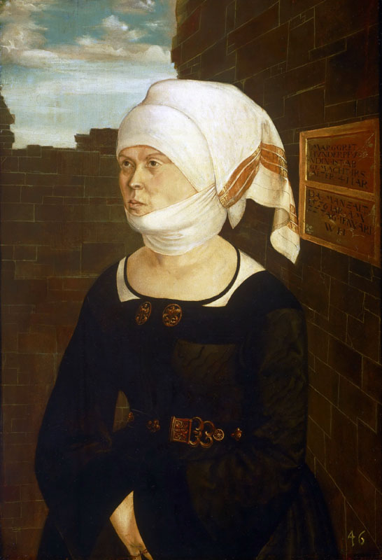{{|1=Bildnis der Margarete Hundertpfundt aus dem Jahre 1526, geschaffen von Wolf Huber (1480-1553), Öl auf Holz. (Philadelphia Museum of Art, Inventar-Nr. 1438)}}