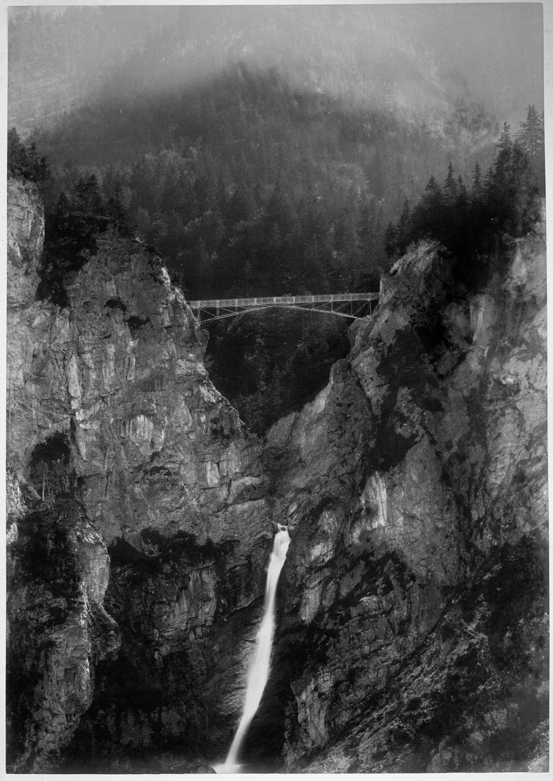 Marienbrücke und Pöllatschlucht bei Neuschwanstein. Foto von Bernhard Johannes (1848-1899), 1887. (Bayerische Staatsbibliothek, Bildarchiv ansi-000921) HLB