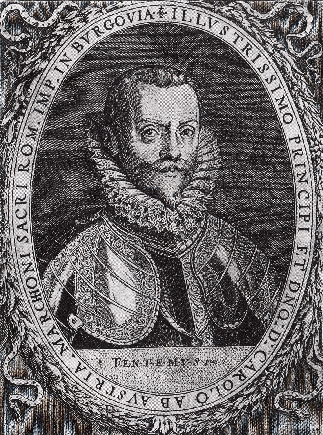 Markgraf Karl von Burgau (1560-1618, reg. 1609-1618). Kupferstich von Dominicus Custos (1560-1612) aus der Zeit nach 1606. (Stuttgart, Württembergische Landesbibliothek, Grafische Sammlungen)