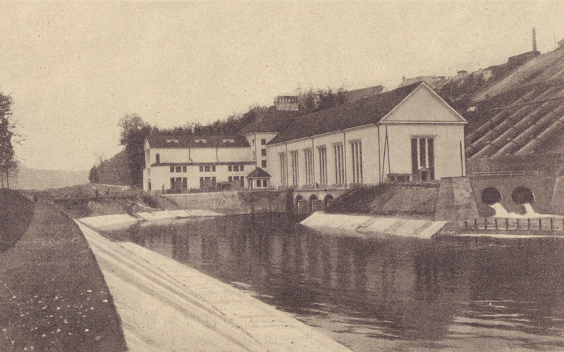 Das Maschinenhaus des Alzwerks bei Burghausen. Abb. aus: Das Bayerland, Jahrgang 34 vom Mai 1923, 144. (Bayerische Staatsbibliothek, 4 Bavar. 198 t-34) HLB
