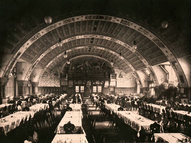 Foto des Festsaals des Mathäserbräus in München von 1911. Abb. aus: [Georg Jakob Wolf]: Ingenieur J. Heilmann und das Baugeschäft Heilmann und Littmann. Ein Rückblick auf vierzig Jahre Arbeit, [München 1911], 19. (Bayerische Staatsbibliothek, 2 Bavar. 1602 z)