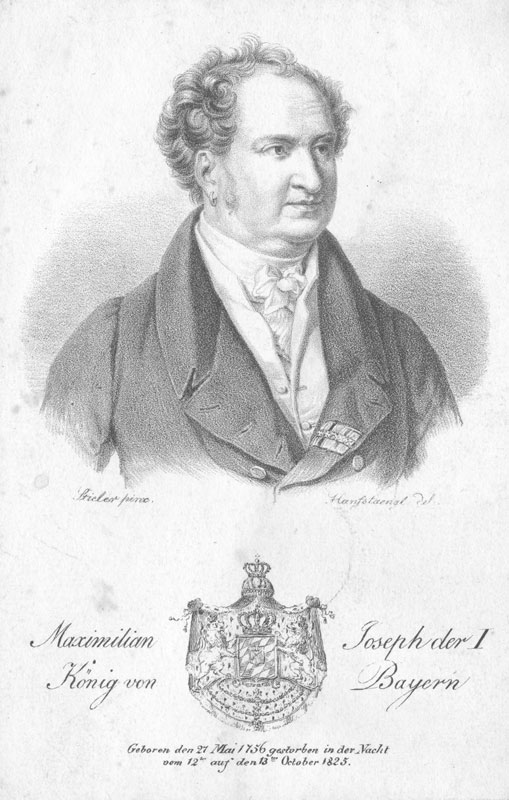 König Max I. Joseph (1756-1825). Lithographie von Franz Hanfstaengl (1804-1877) nach Joseph Karl Stieler (1781-1858). (Bayerische Staatsbibliothek, Bildarchiv port-018673) HLB