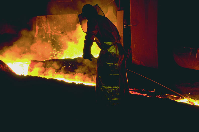 Hochofenanstich im Werk der Maxhütte in Rosenberg um 1990. (Stadtmuseum Sulzbach-Rosenberg) HLB