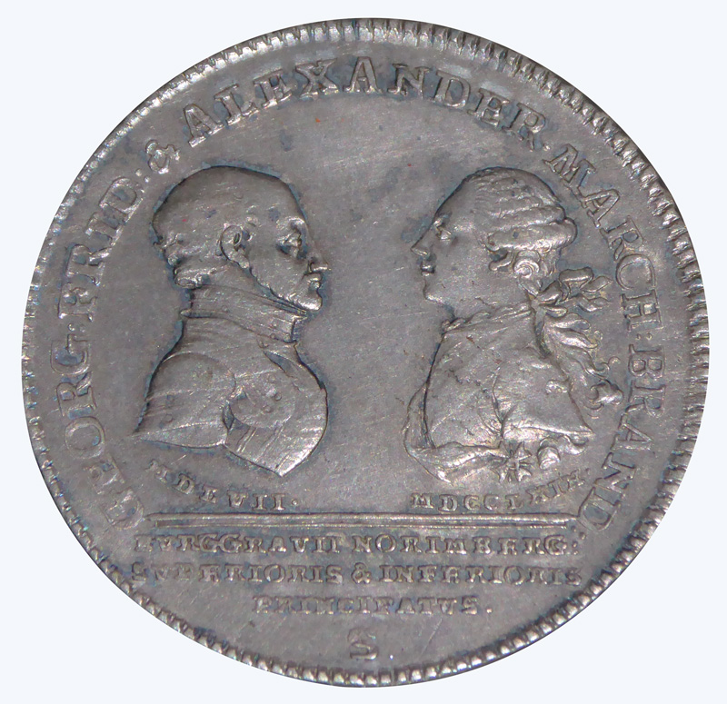 Medaille zur Vereinigung der Fürstentümer Bayreuth und Ansbach, 1769. (Historisches Museum Bayreuth)