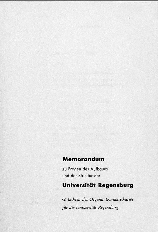 In dem Memorandum des Organisationsausschusses von 1963 werden Aufbau und Struktur der neu eingerichteten Universität Regensburg geklärt. (Universitätsbibliothek Regensburg 00/AL 57403 M533) HLB
