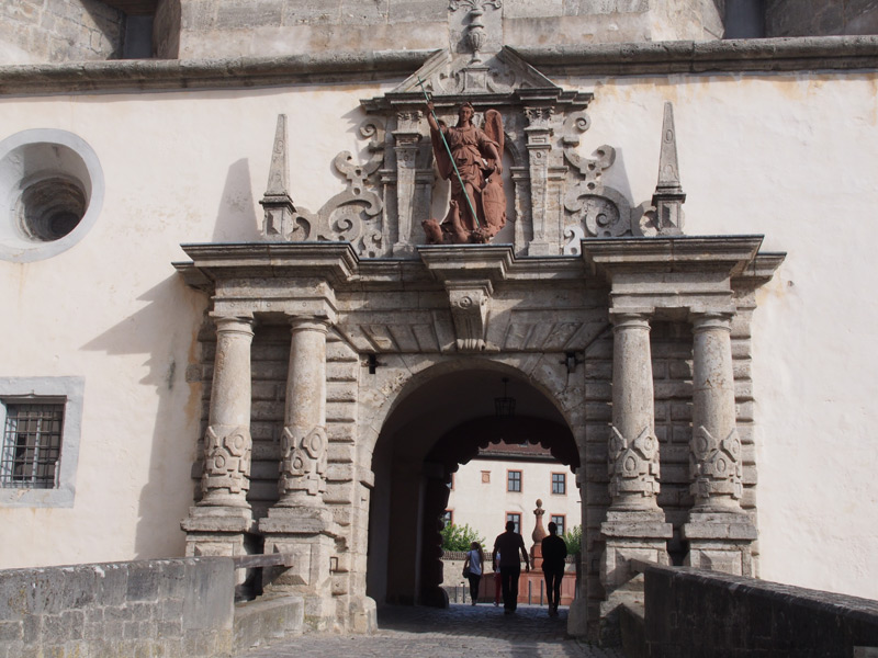 Das Michaelstor an der Echterbastei mit der Figur des Erzengel Michael, Festung Marienberg, 2014. (Foto von Hajotthu lizenziert durch CC BY 3.0 via Wikimedia Commons) HLB