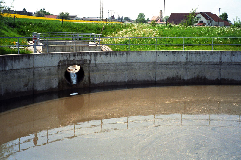 Regenüberlaufbecken als Fangbecken vor der Kläranlage der Stadt Monheim, 2000. (Foto: Peter Schleypen)