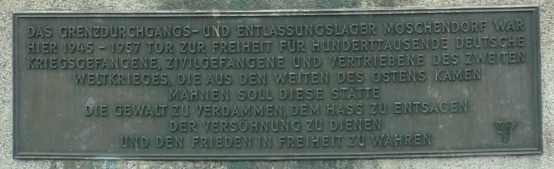 Inschriftentafel des Denkmals für das Lager Moschendorf bei Hof. ([Foto von PeterBraun74 lizensiert durch CC BY-SA 3.0 via Wikimedia Commons) HLB