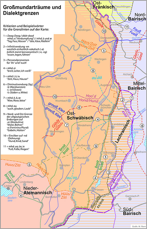 Werner König, Großmundarträume und Dialektgrenzen, in: Historischer Atlas von Bayerisch-Schwaben, 2. Auflage, 5. Lieferung, Hg. von Hans Frei, Pankraz Fried und Rolf Kießling, Augsburg 2010. (Werner König) HLB