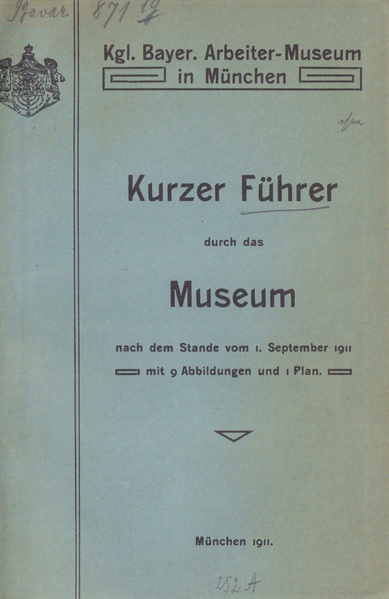 Königlich-Bayerisches Arbeiter-Museum in München. Kurzer Führer durch das Museum, München 1911. (Bayerische Staatsbibliothek, Bavar. 871 lg) HLB