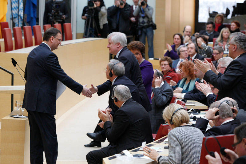 Der tschechische Premierminister Petr Necas (geb. 1964, Premierminister 2010-2013) nach seiner Rede vor Abgeordneten und geladenen Gästen im Plenarsaal des bayerischen Landtags am 21. Februar 2013. Erstmals in der Geschichte beider Länder hat ein tschechischer Premierminister in der bayerischen Volksvertretung gesprochen. (Foto: Bayerische Staatskanzlei)