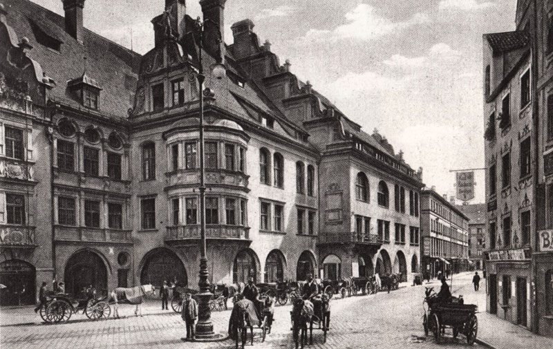 Der Neubau des münchner Hofbräuhauses auf einer Fotografie aus dem Jahre 1900. Abb. aus: Assél, Astrid und Huber, Christian: München und das Bier. Auf großer Biertour durch 850 Jahre Braugeschichte, 56 unten. (Veröffentlicht mit Genehmigung des Hofbräuhauses München)
