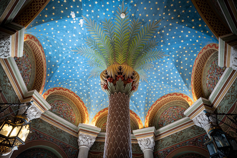 Deckengemälde mit Sternen im Treppenturm von Schloss Neuschwanstein. (© Bayerische Schlösserverwaltung, Kreativ-Instinkt) HLB