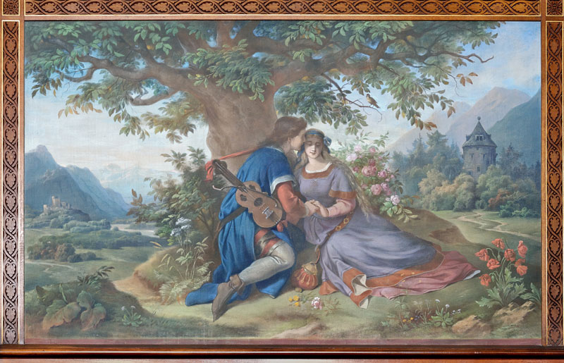 Walther von der Vogelweide 'Under den Linden'. Wandgemälde von Eduard Ille (1823-1900), um/nach 1880. Ankleideraum, Schloss Neuschwanstein, Palas. (© Bayerische Schlösserverwaltung, MESSBILDSTELLE GmbH, Dresden) HLB