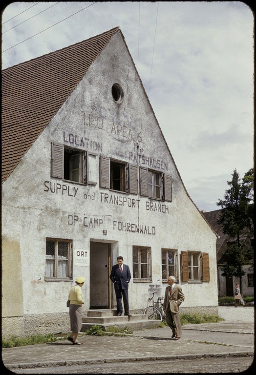 Außenansicht des ORT (Organization for Rehabilitation through Training)-Versorgungs- und Transportgebäudes im DP-Lager Föhrenwald, 1953. Foto: David Rosenstein (1895-1963). ([http:​/​/collections.ushmm.org​/search​/catalog​/pa1145642 United States Holocaust Memorial Museum, Collections: 2003.441.1, courtesy of Elinor Rosenstein Gabriel) HLB