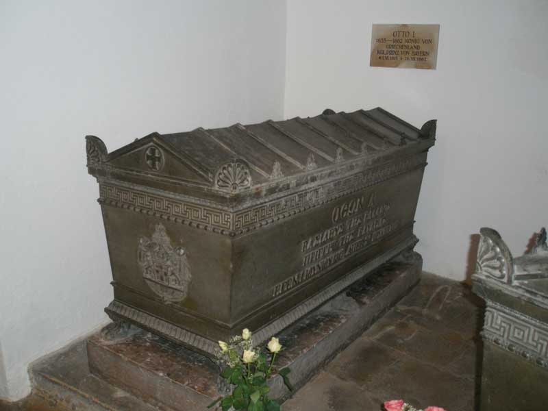 Sarkophag Ottos von Griechenland (1815-1867) in der Gruft der Theatinerkirche in München. (Foto: Kostisl, Public domain via Wikimedia Commons) HLB