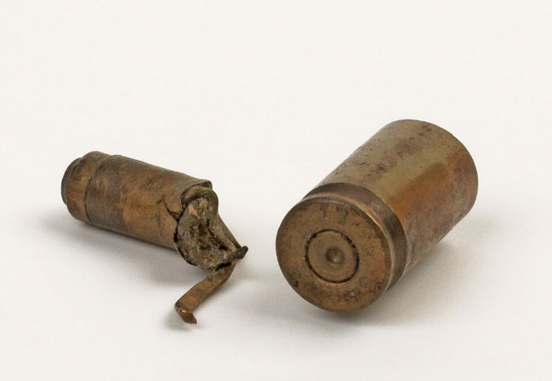 Patronenfragment und Patronenhülse des Attentats auf den bayerischen Landtag am 21. Februar 1919. (bavarikon) (Staatsarchiv München, Staw 2709-4) HLB