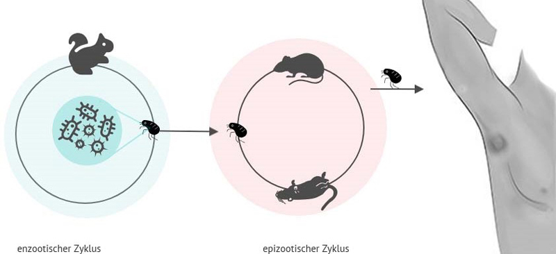 Enzootischer und epizootischer Pestzyklus. (Grafik M.Harbeck, erstellt mit Infogramm) HLB