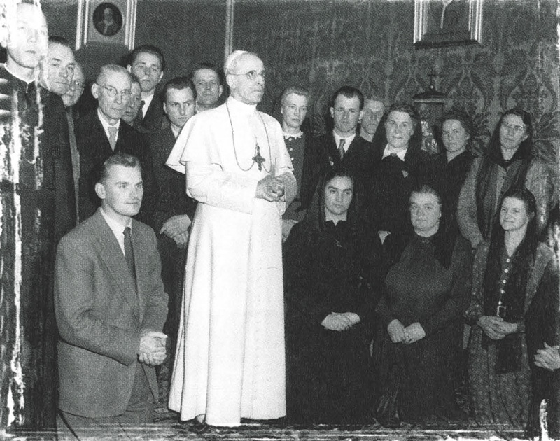 Eine Pilgergruppe versammelt sich um Papst Pius XII. (1856-1958) in Rom. (Archiv des Erzbistums München und Freising) HLB