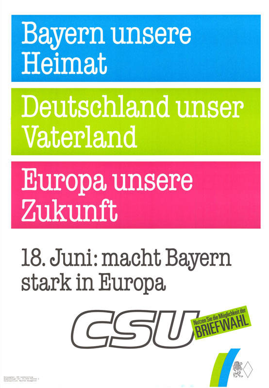 Plakat der CSU zur Europawahl 1989. (HSS-ACSP/Pl S : 1060) HLB