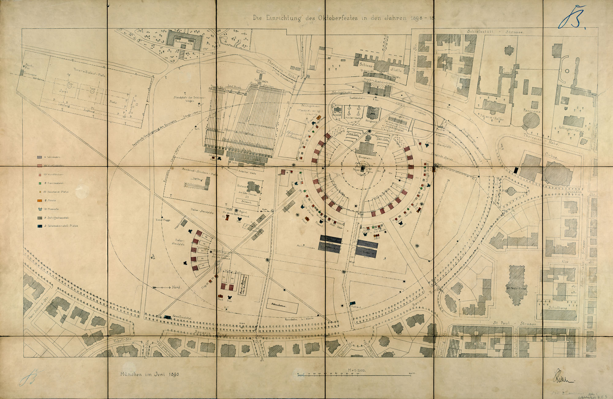 Plan des Oktoberfest-Geländes von 1898. (Stadtarchiv München, DE-1992-OKT-0090-001)