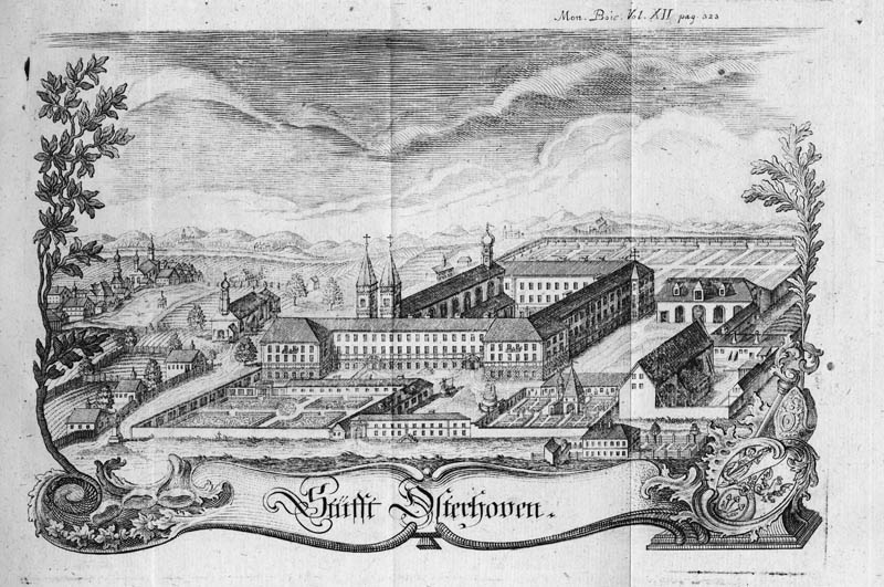 Prämonstratenser-Chorherrenstift Altenmarkt, Kupferstich von 1775. (Bayerische Staatsbibliothek,Bildarchiv port-010627)