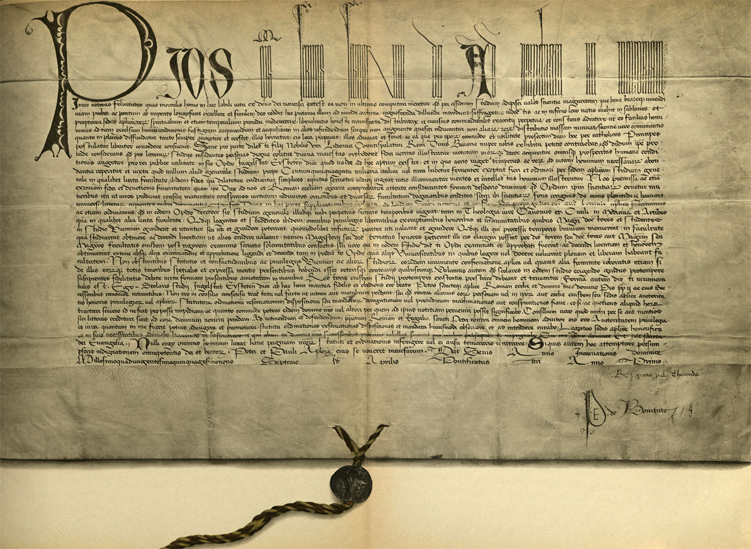 Das Privileg zur Gründung der Universität Ingolstadt 1459 (aus: Pölnitz, Götz Freiher von: Denkmale und Dokumente. Zur Geschichte der Ludwig-Maximilians-Universität. Ingolstadt-Landshut-München, München 1942, Tafel II).