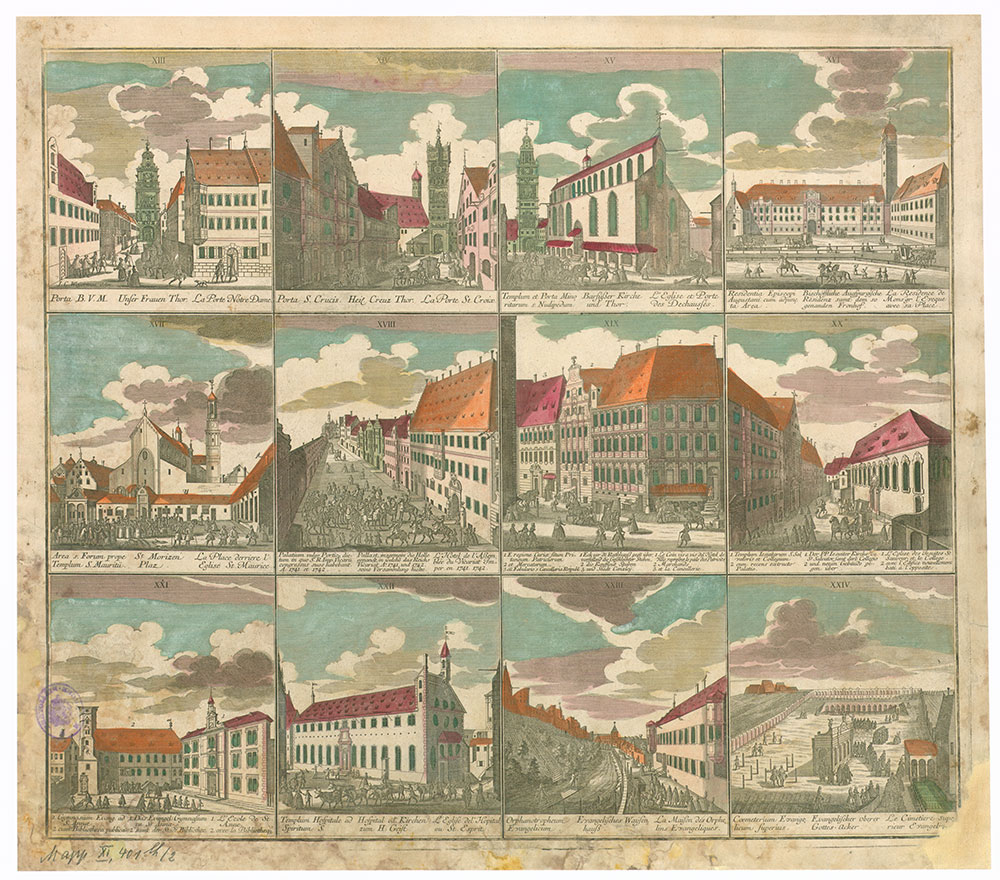 "Prospect der Führnehmsten Gebäude in und außerhalb der Freyen Reichs-Stadt Augsburg", Stichserie von Johann Michael Probst (1757-1809), Augsburg 1779. (bavarikon) (Bayerische Staatsbibliothek, Bildarchiv port-000042)