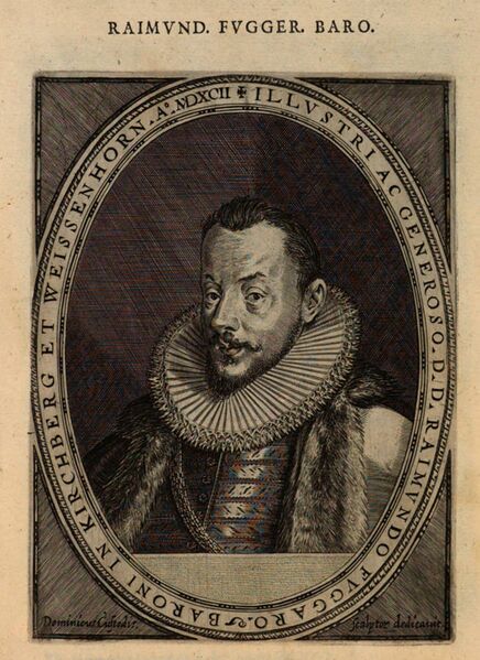 Raimund Fugger, Freiherr von Kirchberg und Weißenhorn (1553-1606). Kupferstich aus: Dominicus Custos, Atrium Heroicum Caesarum, Regu[m], Aliarumque Summatum, Bd. II, Augsburg 1600, (S. 61). (Bayerische Staatsbibliothek, 2 Biogr.c. 29 a-1/3) HLB