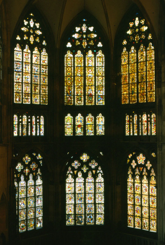 Glasfenster des Hauptchores des Regensburger Domes. Sie entstanden zwischen 1300 und 1330. (Foto von Achim Hubel)