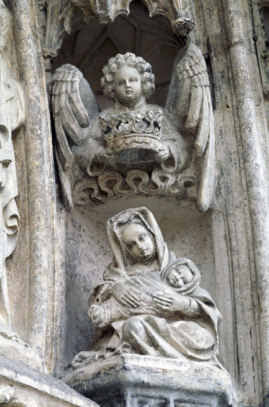 Darstellung der Geburt Mariens, Figur aus den Archivolten des Hauptportales des Regensburger Domesum 1405-1410. (Foto von Achim Hubel)