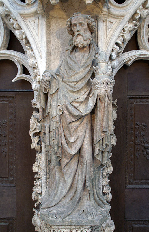 Darstellung des Heiligen Petrus, Figur aus den Archivolten des Hauptportales des Regensburger Domes. (Foto von Achim Hubel)