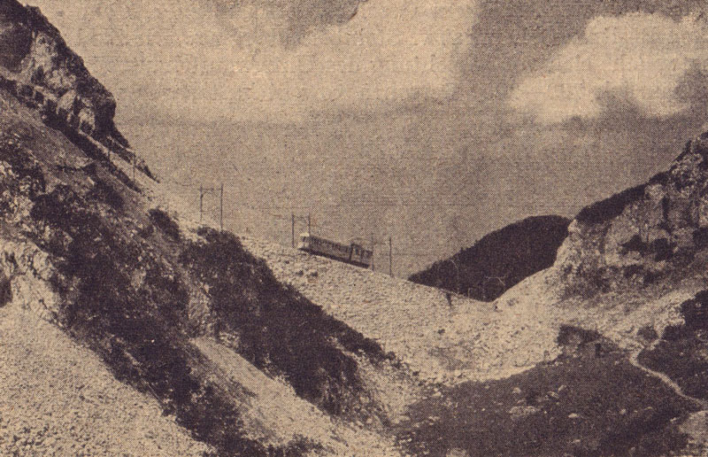 Reindler Scharte an der Wendelsteinbahn. Abb. aus: Theodor Lechner, Die Privat-Eisenbahnen in Bayern. Eine Betrachtung nach der geschichtlichen, technischen und wirtschaftlichen Seite, München und Berlin 1920, 206. (Bayerische Staatsbibliothek, 4 Bavar. 3139 o) HLB