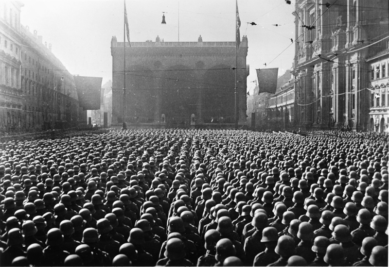 Vereidigung von Rekruten im 7. November 1935 vor der Feldherrnhalle. Fotografie von Heinrich Hoffmann. (Bayerische Staatsbibliothek, Bildarchiv hoff-11871) HLB