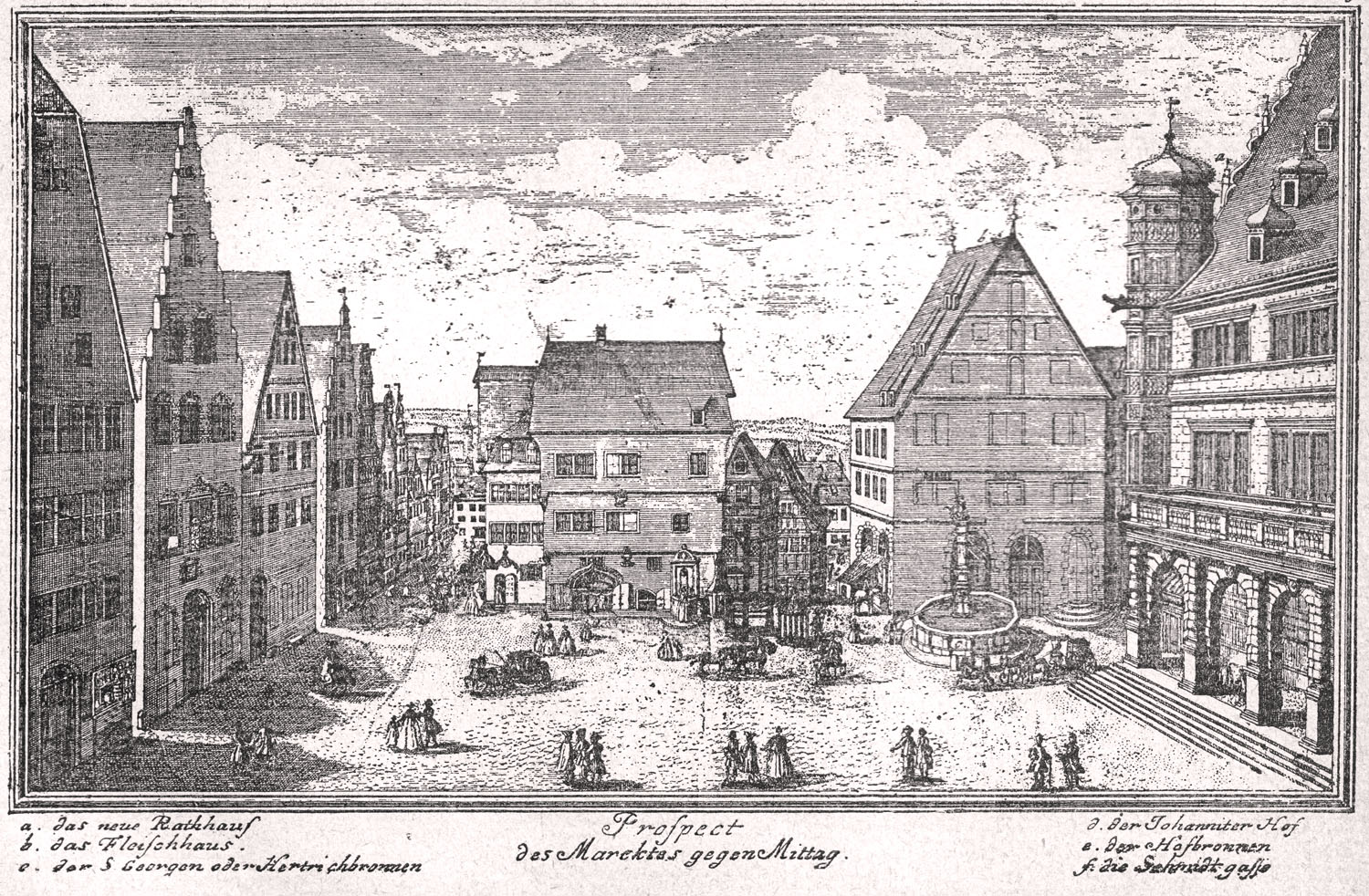 Ansicht des Rothenburger Marktplatzes. (aus: von Winterbach, J. D. W.: Rothenburger Chronik, Rothenburg 1905, nach Seite 48)