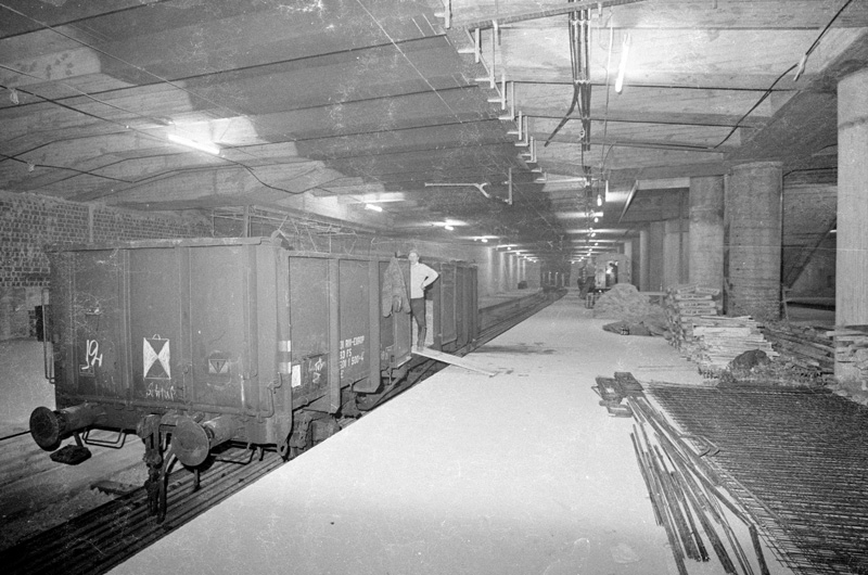 Durch die Vergabe der Spiele an München konnte die schon längere geplante S-Bahn mit dem Bau einer Tunnelquerung der Innenstadt innerhalb von sechs Jahren Bauzeit abgeschlossen werden. Das Foto zeigt die Baustelle der S-Bahn-Station Stachus, 1971. (Alfred Strobel/Süddeutsche Zeitung Photo) HLB