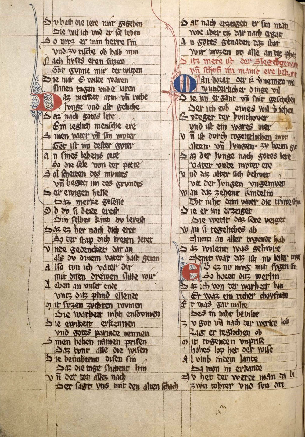 Rüdiger von Hinkoven: Der Schlegel in einer Sammelhandschrift mit Reimpaardichtungen aus dem ersten Viertel des 14. Jahrhunderts. (Universitätsbibliothek Heidelberg Cod. Pal. germ. 341, lizensiert durch CC-BY-SA 3.0 DE)