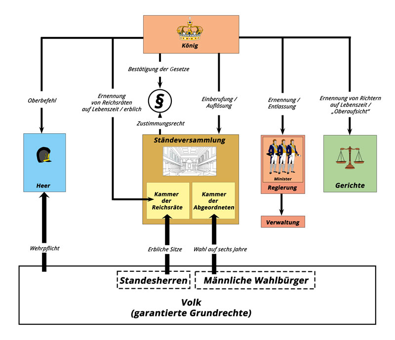 Politisches System der Verfassung des Königreichs Bayern von 1818. (Stefan Schnupp) HLB