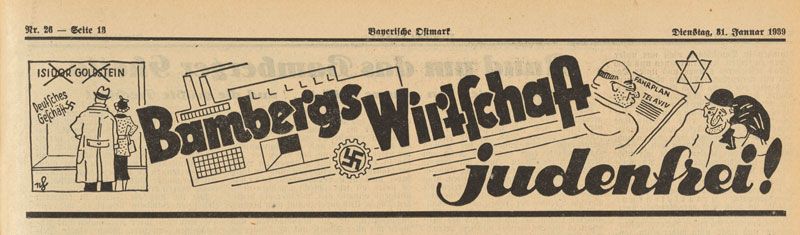 Schlagzeile eines Artikels über den Bamberger Einzelhandel von1939. Abb. aus: Bamberger Tagblatt Nr. 26 (31.1.1939), 26. (Staatbibliothek Bamberg, RB.Eph.10, 31.1.1939; Foto: Gerald Raab) HLB
