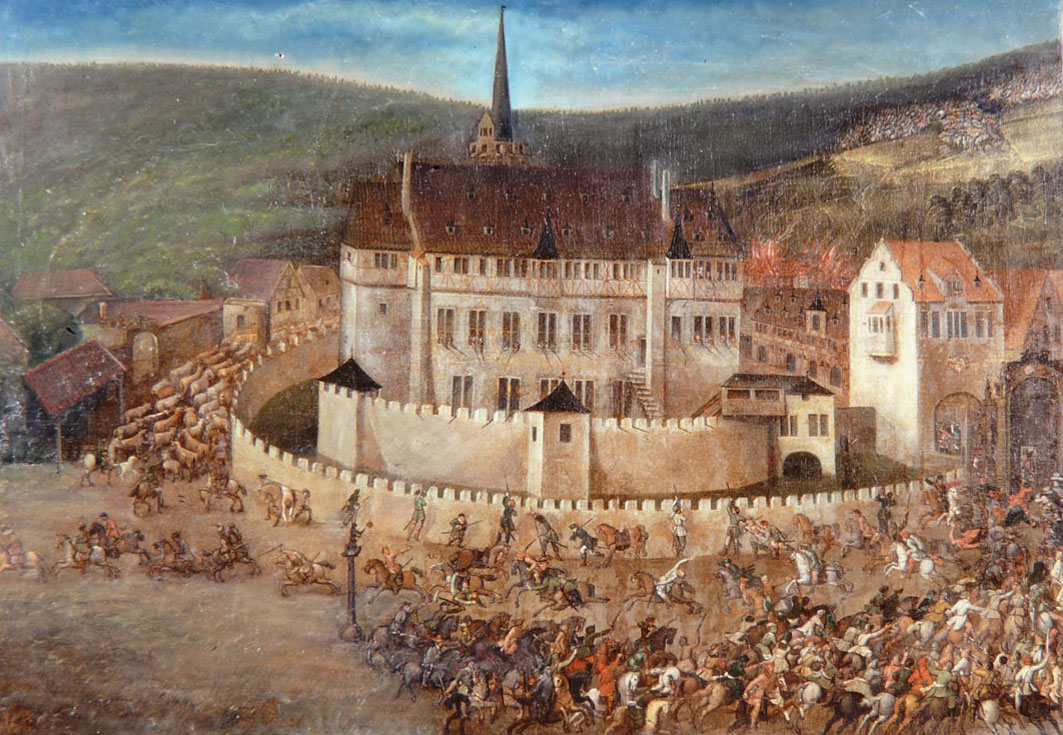 Ansicht von Schloss Erbach während eines Kroatenüberfalls im Jahr 1622. (Privatbesitz Graf zu Erbach-Erbach, Foto: Foto-König, Erbach)