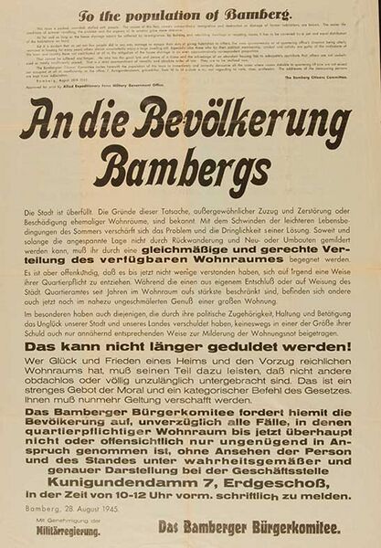 Schreiben des Bamberger Bürgerkomitees an die Bevölerkung vom 28.8.1945. (Stadtarchiv Bamberg) HLB