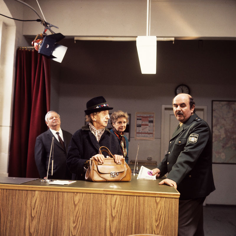Walter Sedlmayr bei Dreharbeiten zu "Polizeiinspektion 1". (Foto: 1977, Bayerische Staatsbibliothek, Bildarchiv fruh-15468)