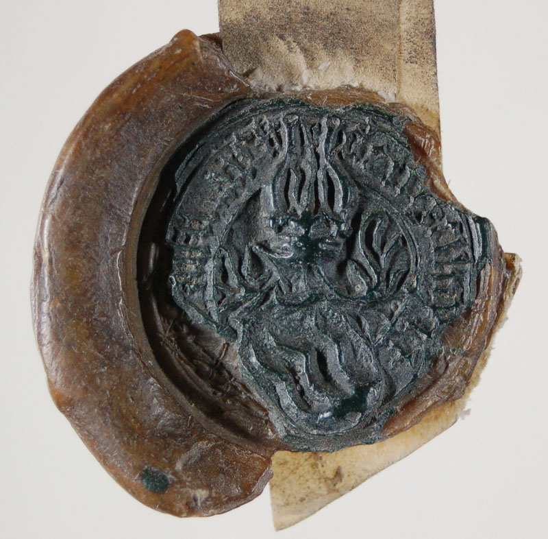 Siegel mit drei Flammen des Engelhard Altmaister, Bürger zu Amberg, Hammermeister zu Kastl (Oberpfalz), aus dem Jahre 1459. (Staatsarchiv Amberg Fürstentum Obere Pfalz , Kloster Kastl Urkunden 527)