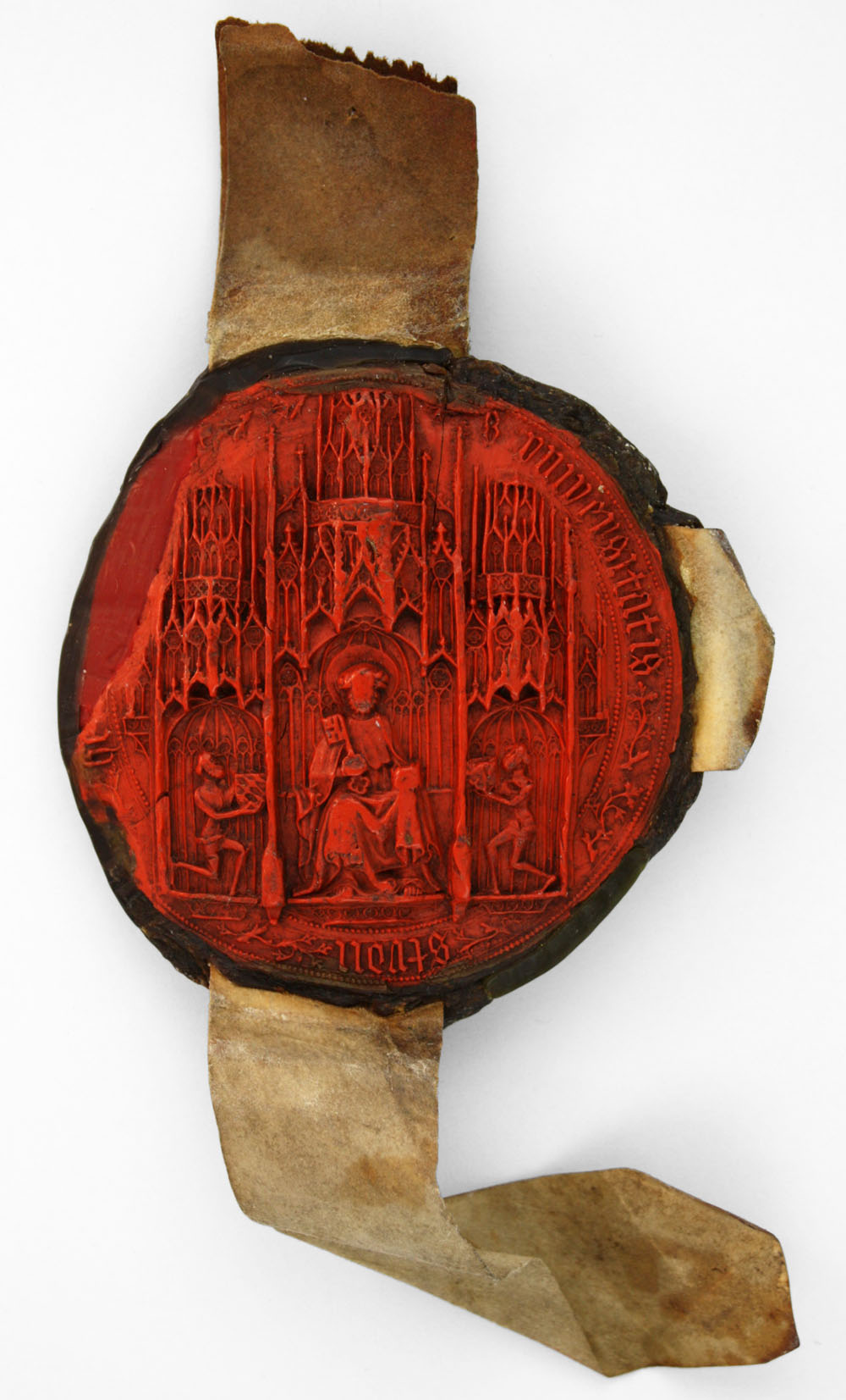 Siegel der Universität Heidelberg, Wachsabdruck, wohl aus dem 15. Jh. (Universitätsarchiv Heidelberg, BA Dig 87; Fotograf: Gabriel Meyer; Copyright: Universitätsarchiv Heidelberg)