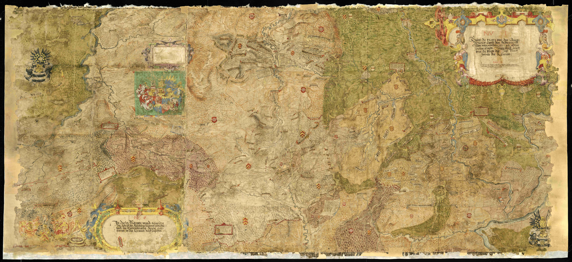 "...die Mappa uber das Ampt Rhieneck...":Ausschnitt aus der Spessartkarte von Elias Hoffmann aus dem Jahre 1584. (Hessisches Staatsarchiv Marburg A 11)
