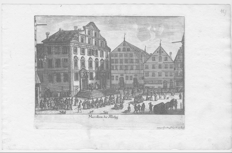 Stadtmetzg, Augsburg. Stich von Simon Grimm (1636-1684). (Bayerische Staatsbibliothek, Bildarchiv port-000820) HLB