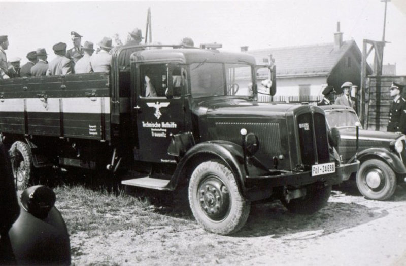 Das Fahrzeug „Trausnitz“ aus dem TN-Standort Landshut beim Einsatz (11-15.03.1943) nach einem Luftangriff auf München. (Technisches Hilfswerk, Historische Sammlung)