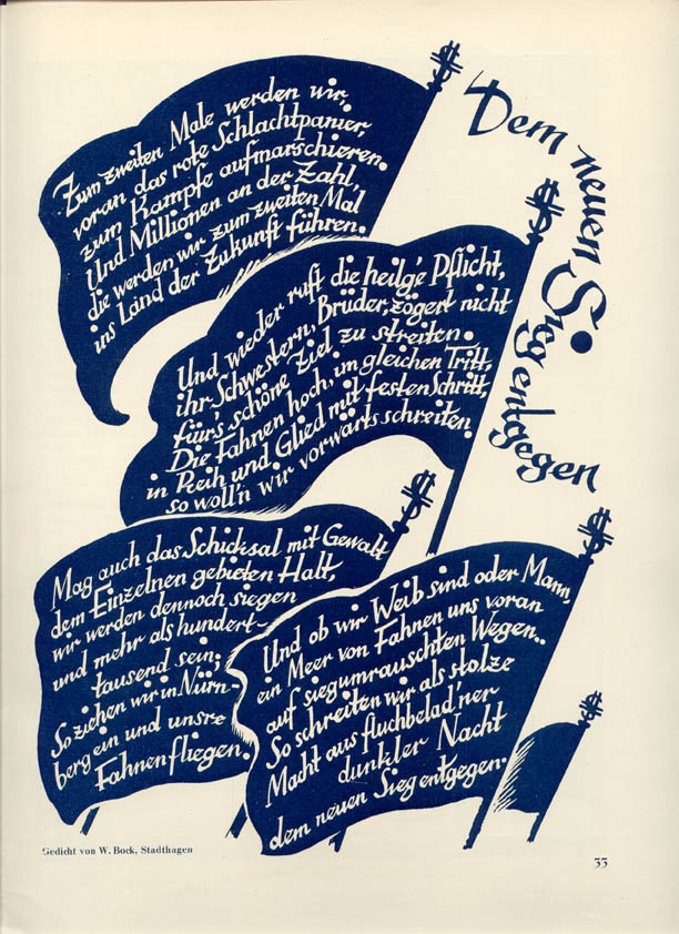 Festschrift No. 3, Nürnberg, 2. Bundesfest 18.-21. Juli 1929, Leipzig 1929, S. 33. (Archiv der Münchner Arbeiterbewegung) Der Urhheberrechtsinhaber hat dieses Werk zur Verfügung gestellt.